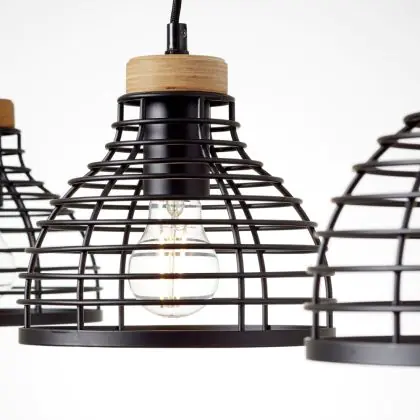 Brilliant Avia Luce Pendente Metallo Legna Nero Legna | Adatto per 3x E27