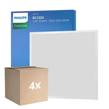 Confezione Multipack 4x Philips Pannello A LED CoreLine RC132V 22/31W 2900-4300lm - 830-835-840 CCT | 60x60cm - UGR <19 - Potenza Selezionabile
