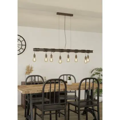 Eglo Luce Pendente Townshend 4 Acciaio Marrone Nero | IP20 - Adatto per 8x E27