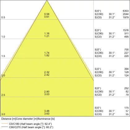Apertura del fascio luminoso a 60°