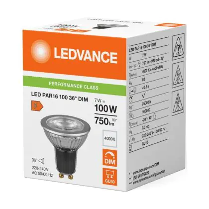 Descrizione Ledvance LED PAR16 GU10 Riflettore 7W 750lm 36D - 840 Bianco Freddo | Dimmerabile - Sostitutiva 100W