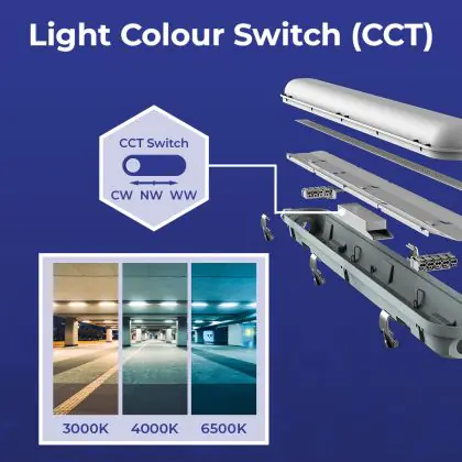 Descrizione Noxion Stagna LED Poseidon V3.0 30W 3900/4200lm - 830-865 CCT | 120cm - Cablaggio Entra/Esci (5x2.5mm2) - Sensore Di Movimento E Luce