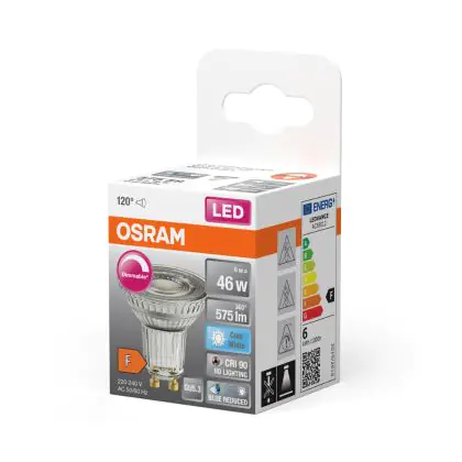 La Osram LED Superstar Riflettore Spot GU10 PAR16 6W 575lm 120D - 940 Bianco Freddo | Miglior Resa Cromatica - Dimmerabile - Sostitutiva 80W è perfetta per la sostituzione della convenzionale Lampada alogena 80W GU10 con colore della luce 940 Bianco Freddo. Questa Lampada ha una forma Riflettore con un diametro di 50mm. I due perni sono distanti tra loro 10mm. Questa lampada funziona con la 220V-230V e quindi non ha bisogno di trasformatori. Passare a LED ti offrirà molti vantaggi!