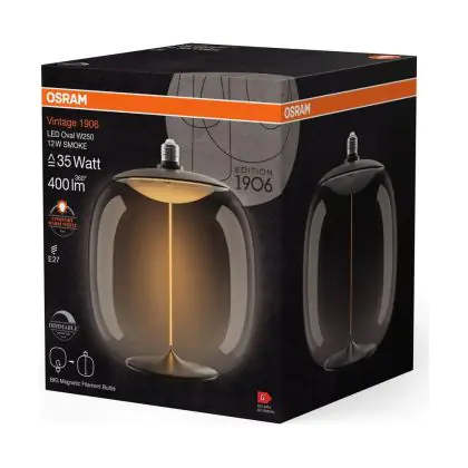La Osram Vintage 1906 LED E27 Special Filamento Smoke 12W 400lm - 818 Bianco Molto Caldo | Dimmerabile - Sostitutiva 40W è la perfetta sostituzione per la tua lampada convenzionale 40W con attacco E27 grazie alla sua tecnologia LED. Passare a LED ti offrirà tanti vantaggi!