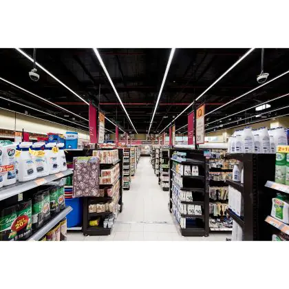 Grazie alla loro potenza luminosa, che va dai 3.000 ai 24.000 lumen, i sistemi a canalina LED si possono usare in uffici, capannoni di produzione, magazzini, ecc. Per le stanze con soffitti alti dai 4 m in su, consigliamo di scegliere apparecchi che abbiano una potenza luminosa di almeno 10.000 lumen. Verifica poi che la temperatura di colore della luce di sia adatta al lavoro da svolgere. Una luce di 4000K è adatta a molti ambienti di lavoro, ma 6500K può essere più appropriata per sale di disegno tecnico o laboratori.